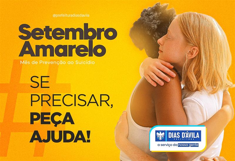 A Prefeitura de Dias d’Ávila está se mobilizando em defesa da vida no Setembro Amarelo, campanha nacional de prevenção ao suicídio. Ao longo do mês, as Secretarias de Saúde (SESAU), de Desenvolvimento e Proteção Social (SEDES) e de Educação (SEDUC) estão promovendo uma série de ações de conscientização e prevenção ao suicídio.
